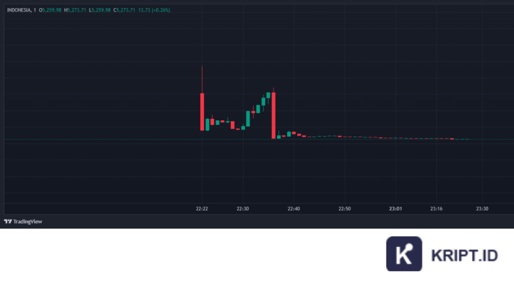 Menurut chart dari boop.fun, platform peluncuran dan trading memecoin di jaringan Solana yang serupa dengan platform yang terkenal, pump.fun, menunjukkan marketcap $INDONESIA, setelah launch sekitar pukul 22.19, sempat melonjak ke ATH disekitar $94.000 USD marketcap, lalu turun tajam sebelum naik kembali ke sekitar $66.000 USD yang berakhir dengan harga anjlok atau rugpull, bersamaan dengan postingan tersebut yang berhasil di takedown.