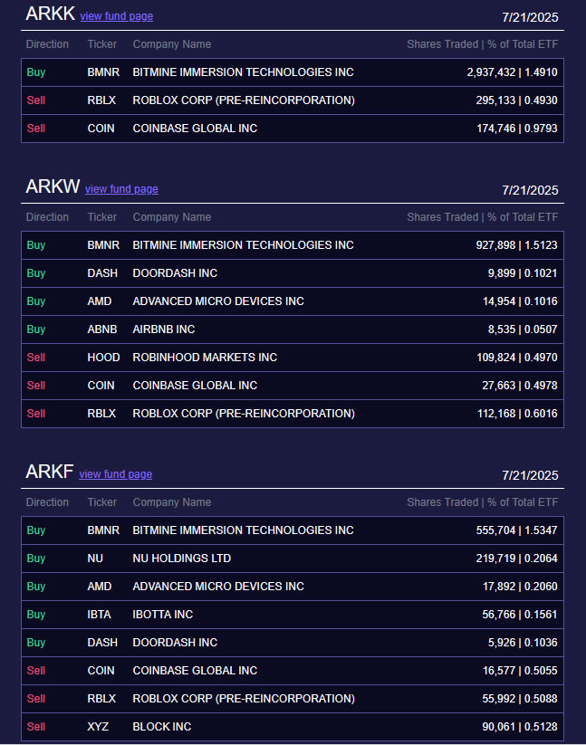 Dana hasil penjualan ini kemudian dialihkan untuk mengakuisisi 4,4 juta saham Bitmine Immersion Technologies (BMNR), sebuah perusahaan yang berfokus pada aset Ethereum dan diketuai oleh Tom Lee dari Fundstrat. Pembelian ini bernilai sekitar $174 juta, menjadikan Bitmine sebagai 1,5% dari setiap portofolio ETF yang direstrukturisasi. Langkah ini menandai akuisisi pertama Wood terhadap saham Bitmine sejak perusahaan tersebut mengumumkan pivotnya ke Ethereum pada akhir Juni.