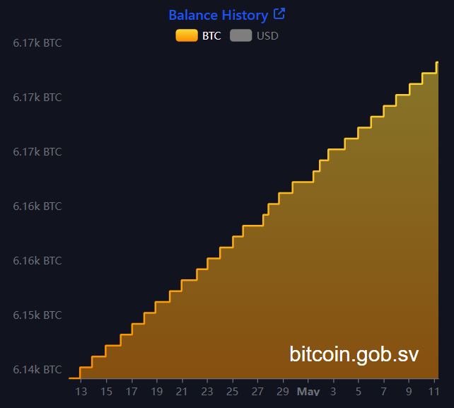 Menurut data dari Kantor Bitcoin El Salvador, negara tersebut mengakuisisi tambahan tujuh BTC dalam tujuh hari terakhir, sehingga total kepemilikannya menjadi 6.173 BTC, dengan nilai lebih dari $637 juta.