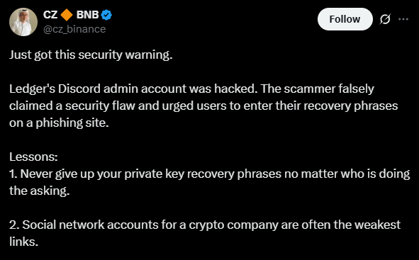 Kejadian ini memicu sorotan terhadap protokol manajemen komunitas Ledger dan mendorong peringatan dari analis keamanan hingga Changpeng Zhao turut berkomentar.