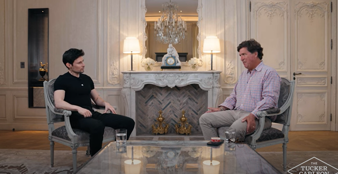 Dalam wawancara eksklusif bersama Tucker Carlson yang tayang di YouTube, Durov mengungkap kebingungannya atas tindakan hukum yang ia alami, dan menyebut bahwa Telegram tidak melakukan pelanggaran apa pun.