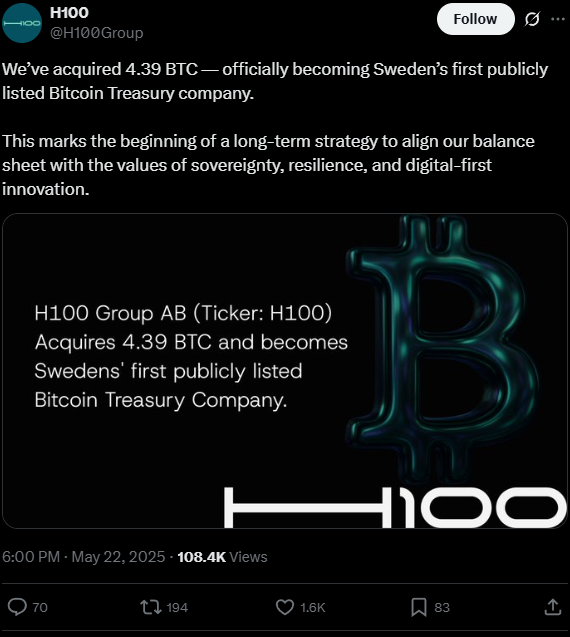 Dunia kripto kembali bergejolak dengan kabar menarik dari dua perusahaan global. H100 Group AB, perusahaan teknologi kesehatan asal Swedia, melonjak 37% di pasar saham setelah mengumumkan pembelian Bitcoin pertamanya.