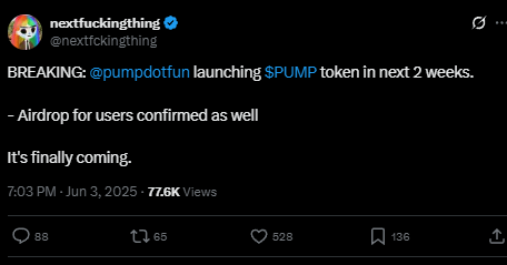Informasi ini pertama kali mencuat lewat unggahan seorang anggota komunitas di X, yang menyebut peluncuran token akan berlangsung dalam dua minggu ke depan, lengkap dengan listing di beberapa bursa terpusat dan airdrop 10% untuk komunitas.