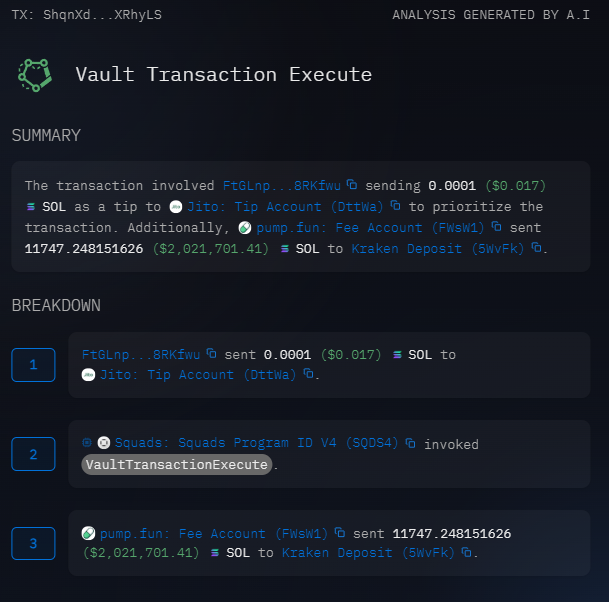 Kemungkinan ini hanyalah bentuk transfer merupakan bagian dari pola rutin Pump.fun, yang biasanya memindahkan pendapatan biaya transaksi ke Kraken setiap satu hingga dua minggu.
