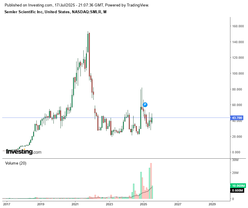 Semler Scientific, perusahaan teknologi medis yang agresif mengakumulasi Bitcoin, kembali menambah kepemilikan aset kripto-nya dengan membeli $25 juta Bitcoin lagi. Dengan pembelian terbaru ini, total kepemilikan Bitcoin Semler Scientific mencapai hampir 5.000 BTC. Namun, strategi “Bitcoin-sentris” ini belum mampu memikat investor, terbukti dari anjloknya harga saham perusahaan sebesar 22% sepanjang tahun ini.