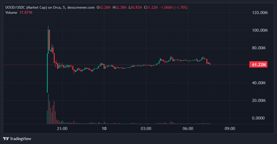 Setelah airdrop yang sangat dinantikan, kapitalisasi pasar token DOOD merosot sekitar 40% pada 9 Mei, menurut data dari DEX Screener.